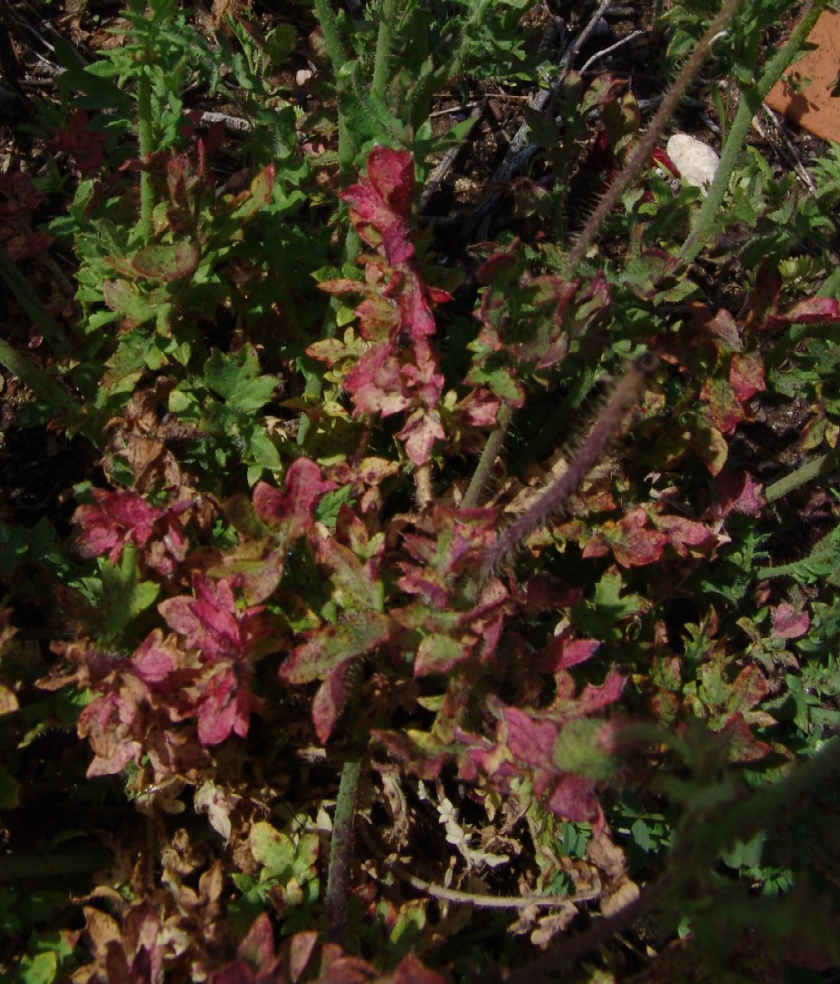 Türkei, Zypern, Naher Osten Endabschnitte der Blätter ca. so lang wie breit, viel größere als die seitlichen Stängel, Kelchblätter, Blätter meist rötlich überlaufen > 1