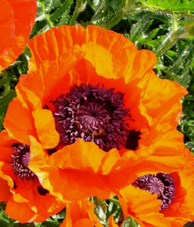 Papaver - Stängel beblättert, Blüten rot oder orange, Kapsel kahl