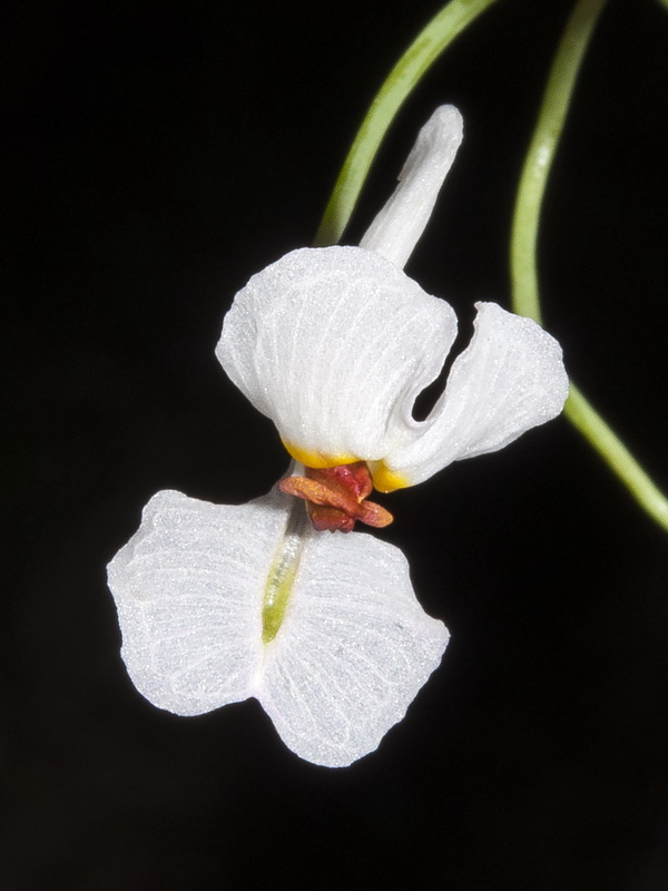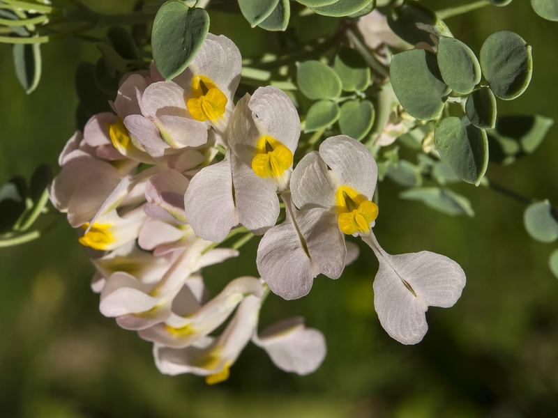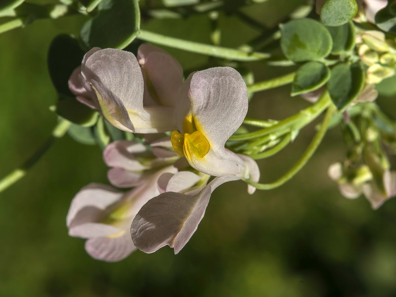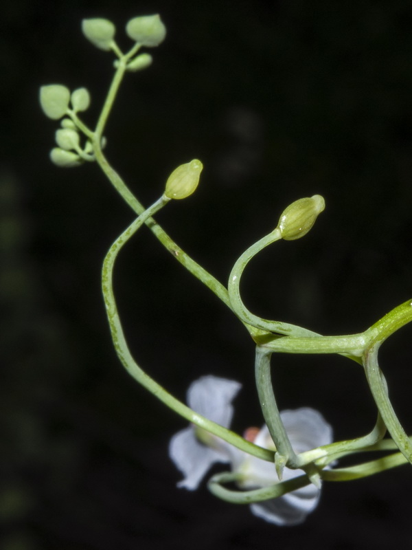 Blüten mit 2 Staubblätter, die jeweils 3 Staubbeutel tragen, mittlere Staubbeutel mit 2 Theken, die äußeren mit 1 Theka, Narbe mit halbmondförmigem Kamm, Kelch 1,5 - 2 mm weiß, häutig, bald hinfällig