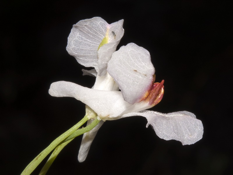 2 Blüten 15 - 20 mm lang, hellrosa, Kelchblätter 1,5 - 2 mm, Griffel mit halbmondförmigem Kamm