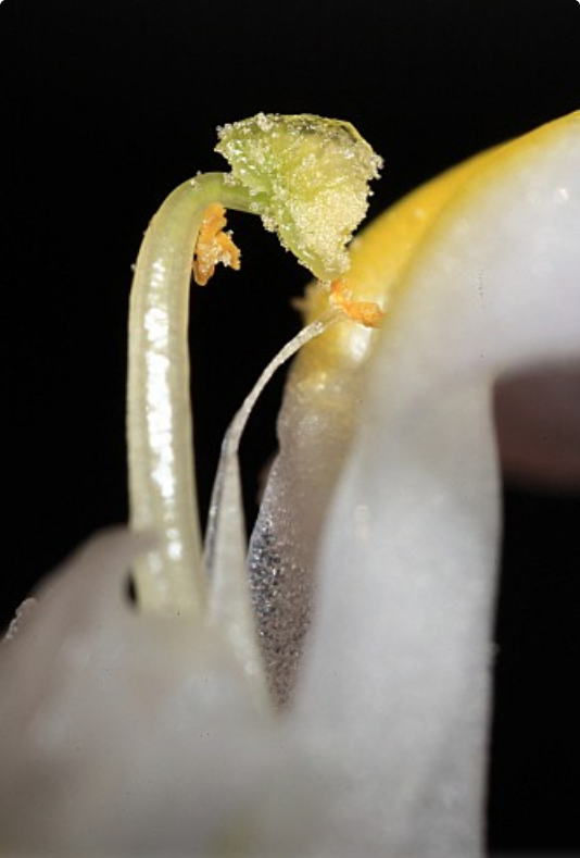 Blüten mit 2 Staubblätter, die jeweils 3 Staubbeutel tragen, mittlere Staubbeutel mit 2 Theken, die äußeren mit 1 Theka, Narbe ohne halbmondförmigem Kamm