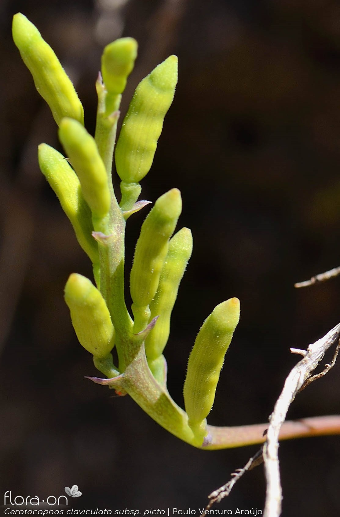 1 Frucht kahl, Kronblätter cremeweiß, Blätter blaugrün