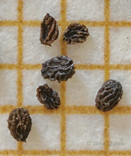 0,7 mm lang, braun, mit furchiger Oberfläche,