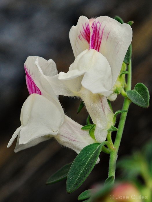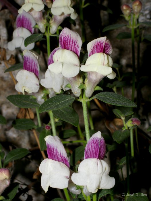 Blüten weiß oder cremefarben, 18 - 25 mm lang, drüsig behaart, Oberlippe aufrecht, ca. 2 mm tief eingeschnitten mit violettroten Adern, Unterlippe 3- teilig, Kronlappen spreizend, Gaumen verschlossen, weiß oder gelb