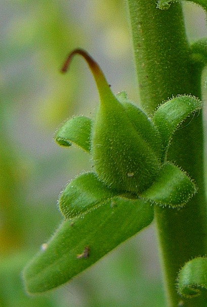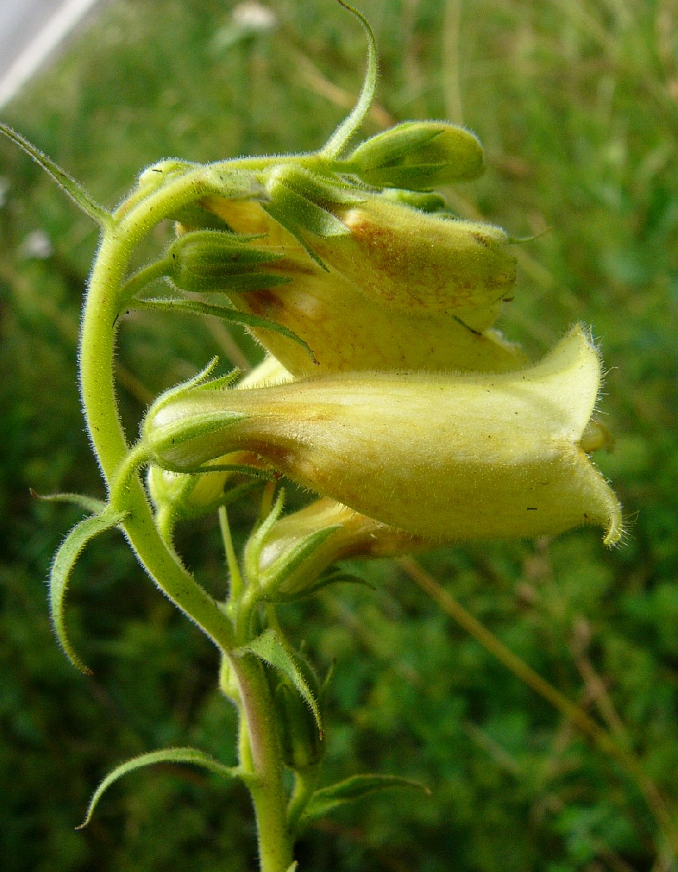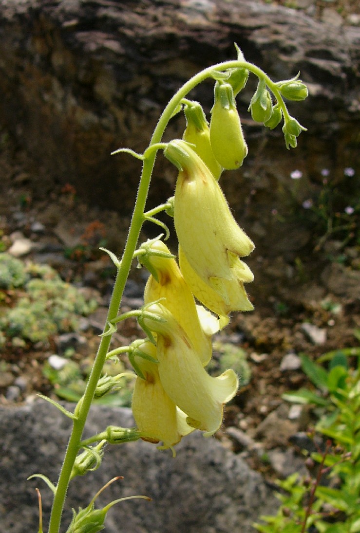 Pflanze 40 - 120 cm groß Blütenstand traubig, einseitswendig Krone hellgelb, glockig, 3 - 4 cm lang, innen mit braunen Adern Unterlippe kurz dreieckig, manchmal zurückgerollt Oberlippe stumpf ausgerandet, zurückgerollt, die 4 Staubblätter ragen nicht aus der Kronröhre heraus, die Staubbeutel berühren sich paarweise, der Griffel endet in einer zweilappigen Narbe. Blütenstiel drüsig, kürzer als Tragblatt und Kelch Früchte anfangs grün, behaart Reife Früchte braun, 2- klappig aufspringend,