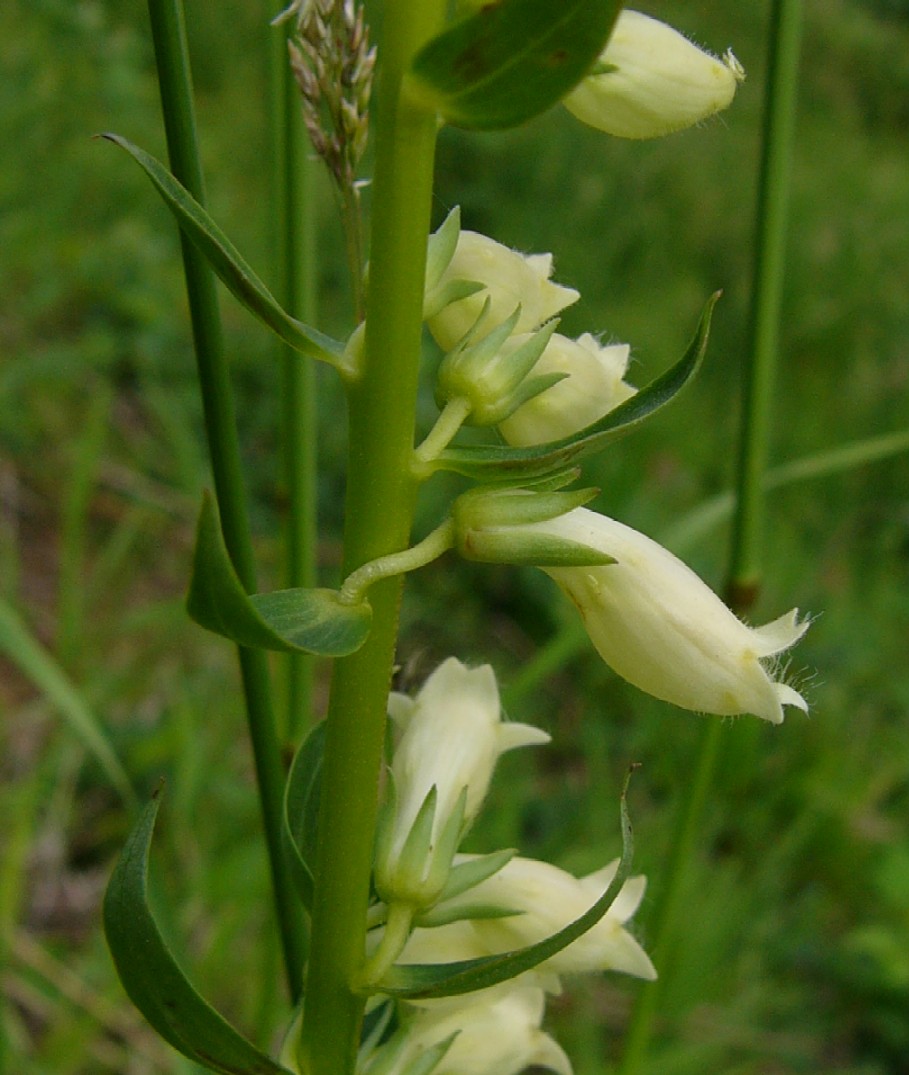 Pflanze 40 - 80 cm groß Krone klein ( 2 - 2,5 cm), hellgelb Mittellappen der Unterlippe lang und spitz Blüten engröhrig, gebogen Oberlippe spitz 2-lippig, ohne Zeichnung Blütenstandsachse und Kelchblätter kahl Blätter kahl, lanzettlich, scharf gesägt, ohne Grundblattrosette