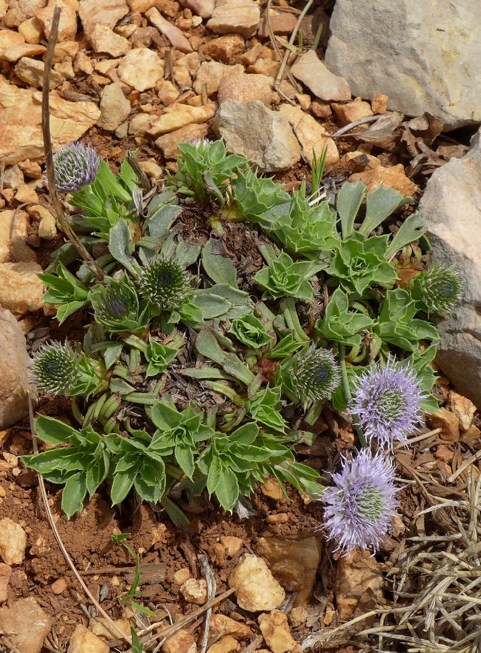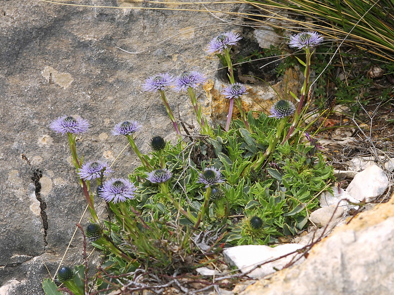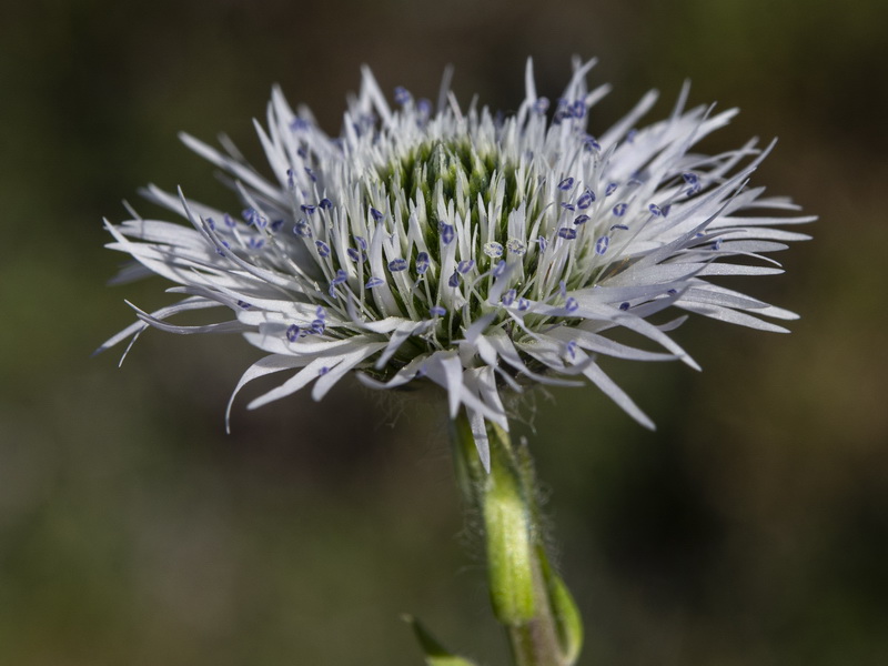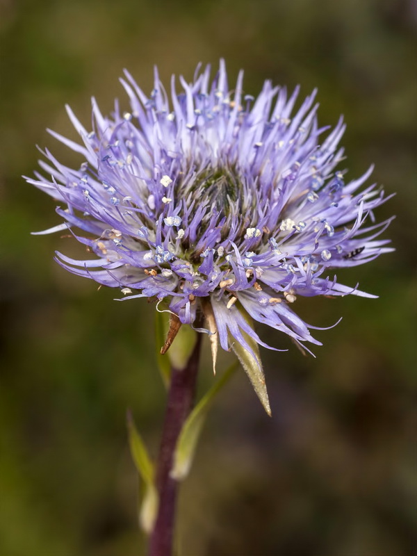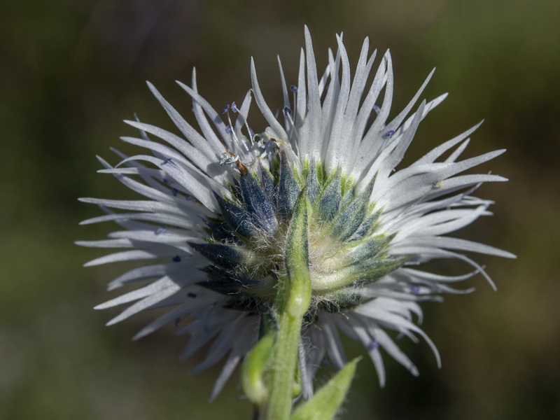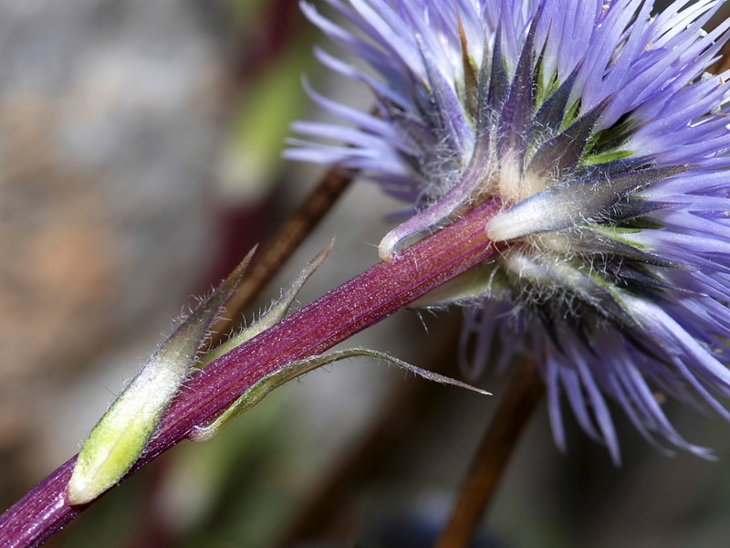 Köpfchenstiele 10 - 35 cm lang, aufrecht, mit vielen, kleinen, lanzettlichen sitzenden, dem Stiel +/- angedrückten, dornenlosen Blättern