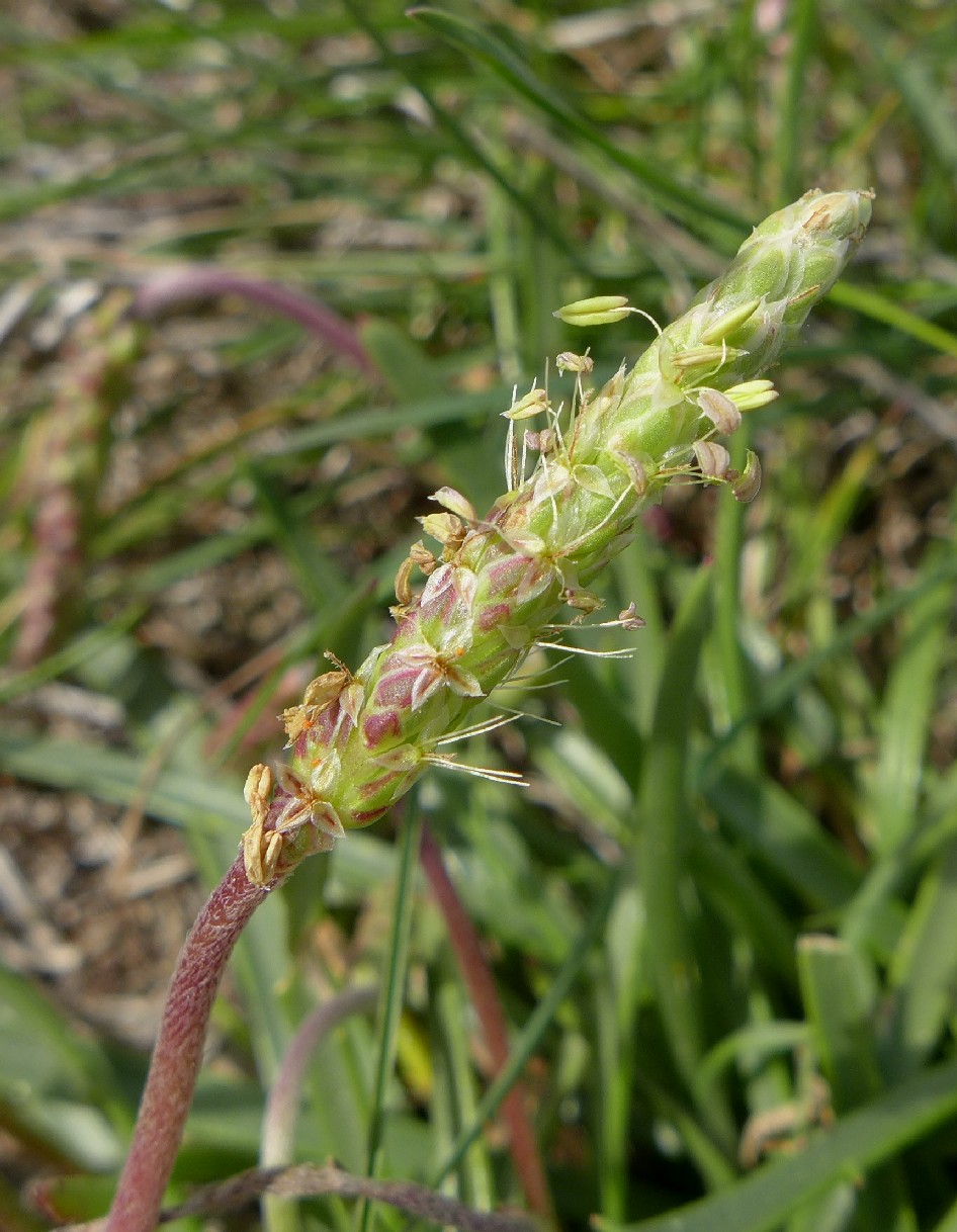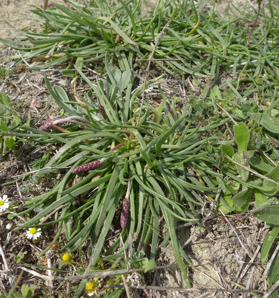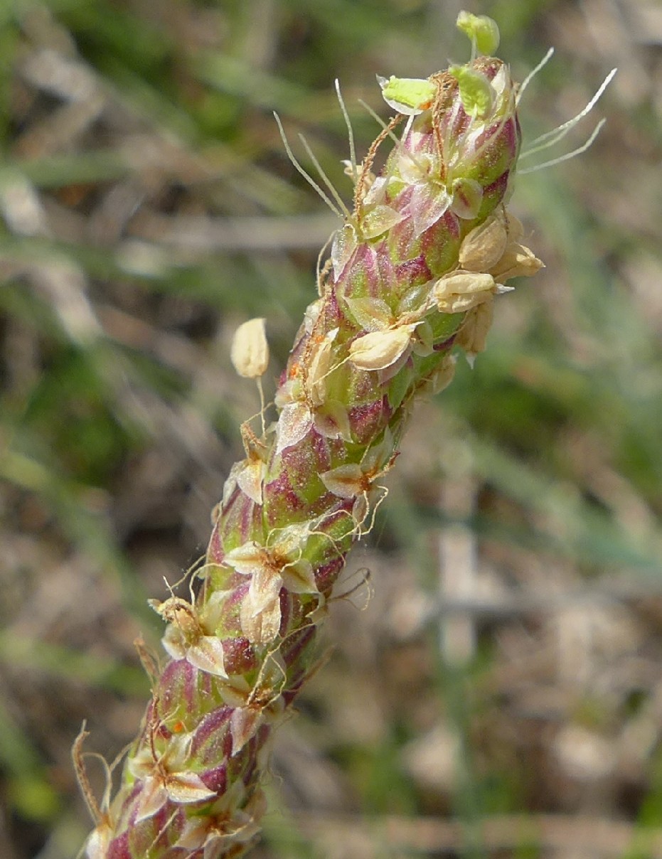 Plantago - Stängel ohne Blätter, Grundblätter breiter als 2 mm, lanzettlich - linealisch, +/- ganzrandig, nicht wollig behaart, mit undeutlichen Nerven, Tragblätter kürzer als die Blüten, kahl oder bewimpert, hinteres Kelchblatt breit geflügelt