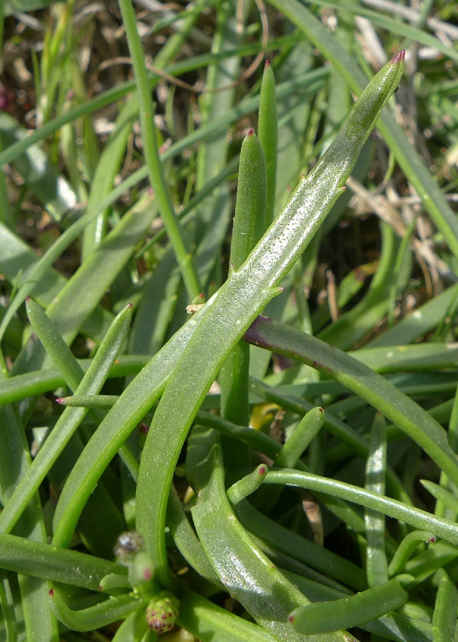 Blätter linealisch, fleischig, kahl, +/- rinnig, aufsteigend oder am Boden ausgebreitet