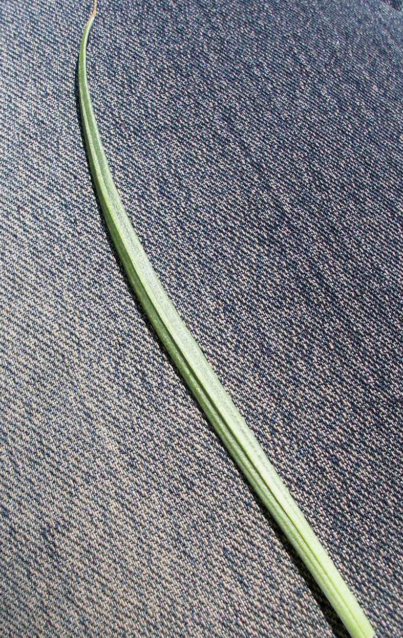 Grundblätter rosettig, aufrecht oder am Boden ausgebreitet, linealisch, kahl, mit 1 - 3 undeutlichen Nerven, 110 - 200 mm lang, 2 - 10 mm breit, rinnig, ganzrandig oder mit kleinen Zähnchen, beim Trocknen nicht schwarz werdend