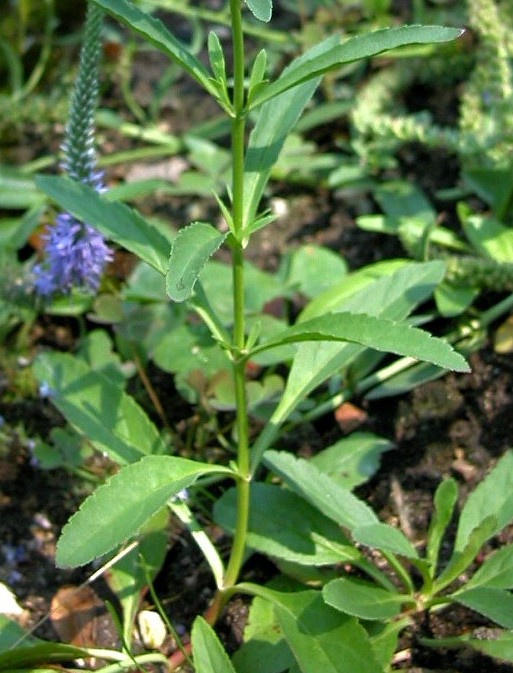 Blätter am aufrechten Stängel bis zur Blütentraube reichend, oft wechselständig