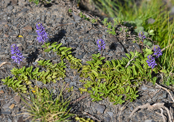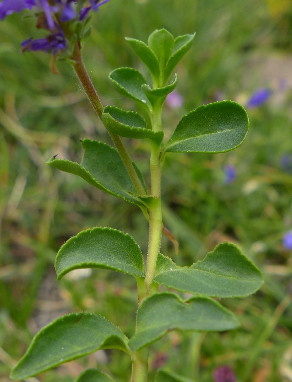 1 Endemit der Südwestalpen, Blätter eiförmig, nur an der kriechenden Sprossachse