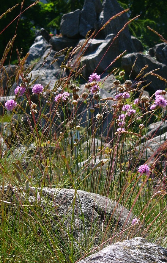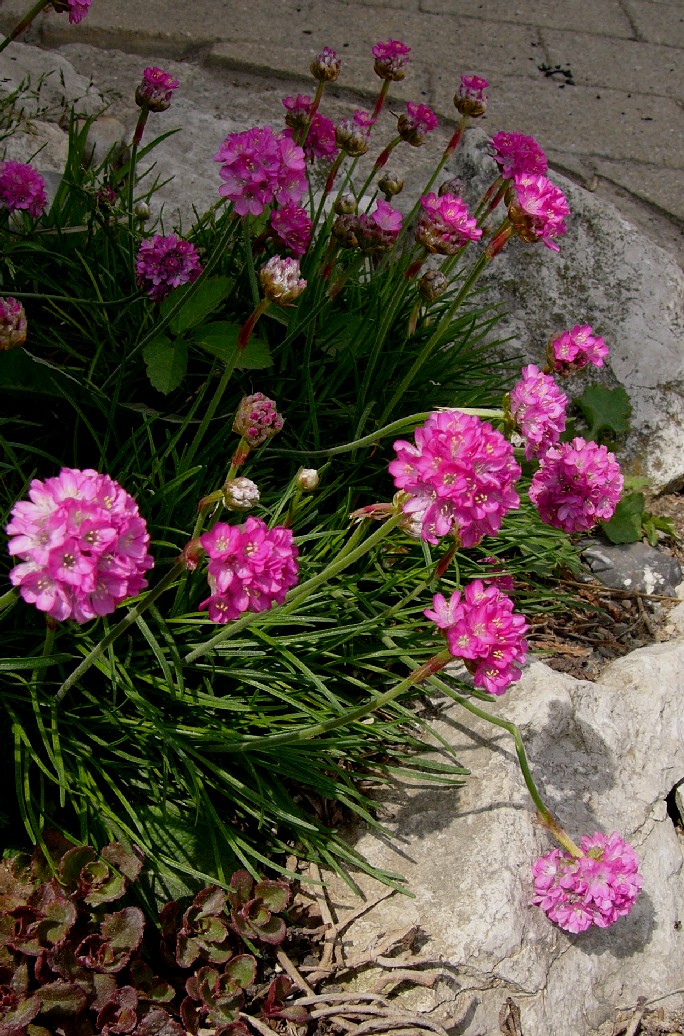 Kultursorte mit ebenfalls sehr intensiv gefärbten rosa Blüten: Armeria maritima 'Düsseldorfer Stolz':