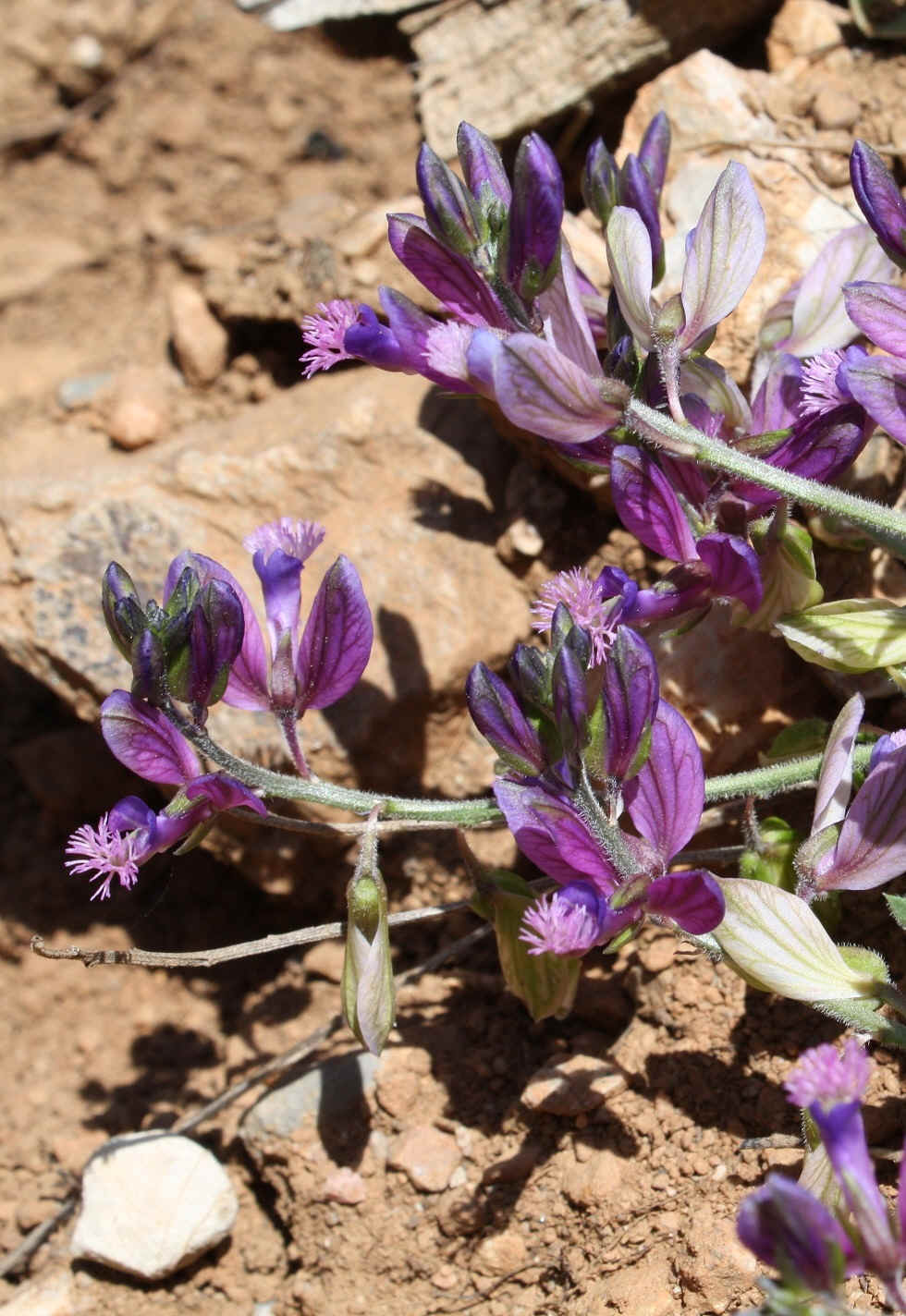 Verbreitung: N- Peloponnes Blütenstand wenigblütig (2 - 14 Blüten), Flügel dunkelviolett, Adern deutlich dunkler, Blütenstiele und Kelchblätter behaart Tragblätter der Blüten kürzer oder höchstens so lang wie die Blütenstiele, hinfällig > 1