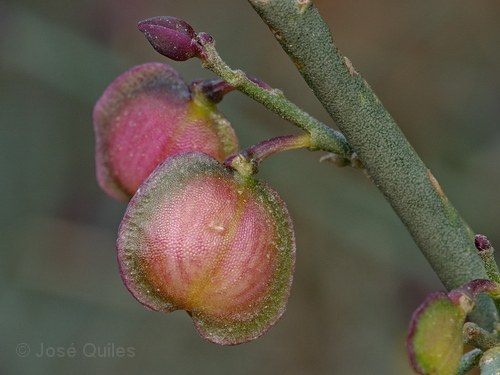 Frucht 10 - 12 mm lang, 8 - 9 mm breit, von einem 0,5 mm breiten Flügel umgeben