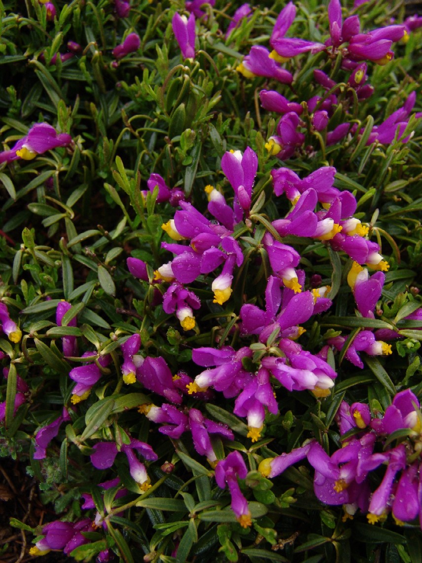 Polygala- Blüten rosaviolett, Schiffchen gelb oder orange, Blütenstand locker