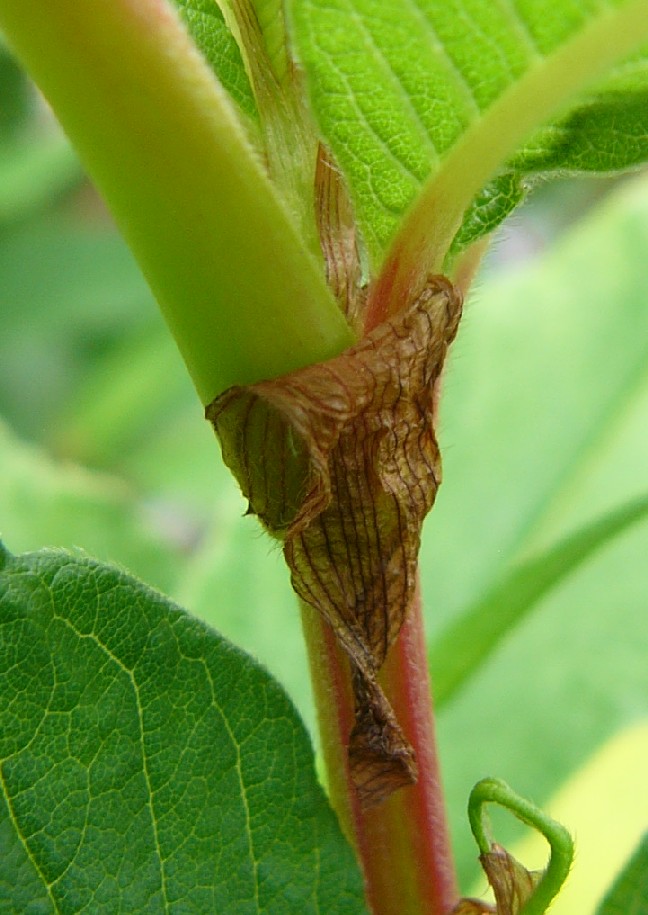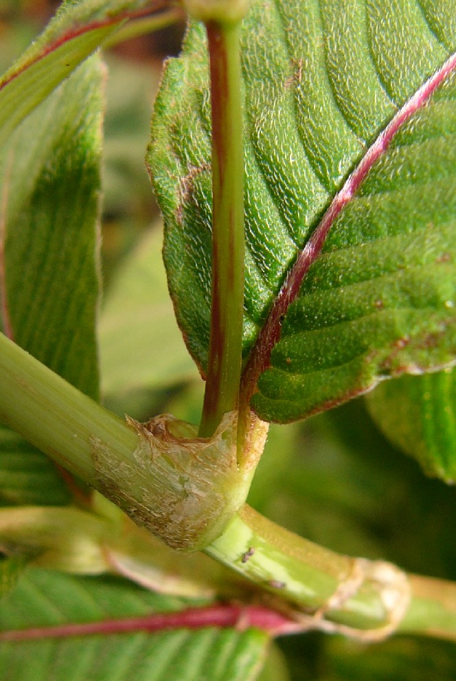 Ochrea dunkelbraun, derb, kahl, ganzrandig