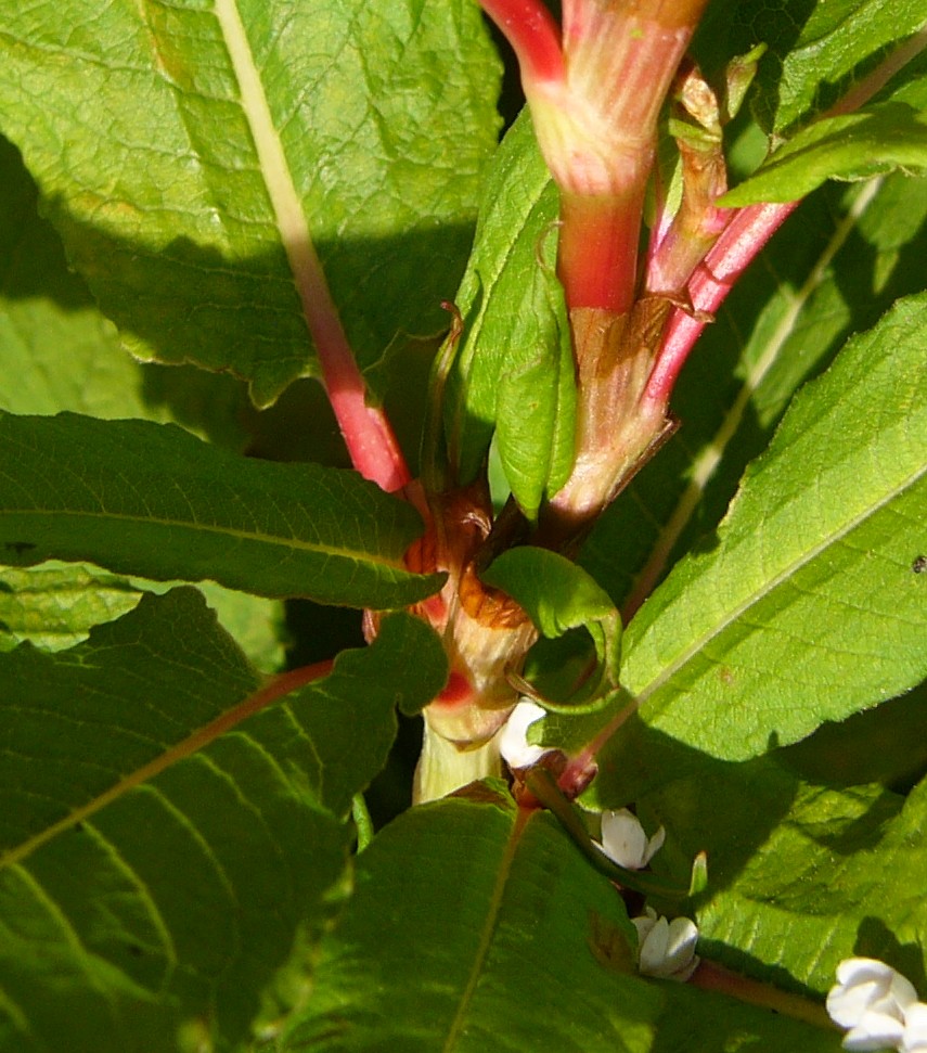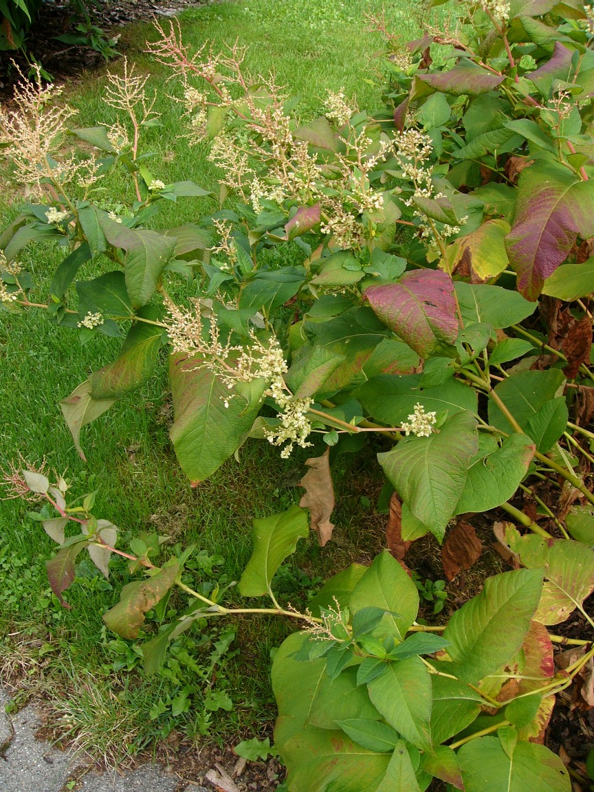 Pflanze 130 - 180 cm groß Blätter schmaler, Blüten groß (5 mm im Durchmesser) Nussfrüchte meist fehlend (steriler Bastard) > 8