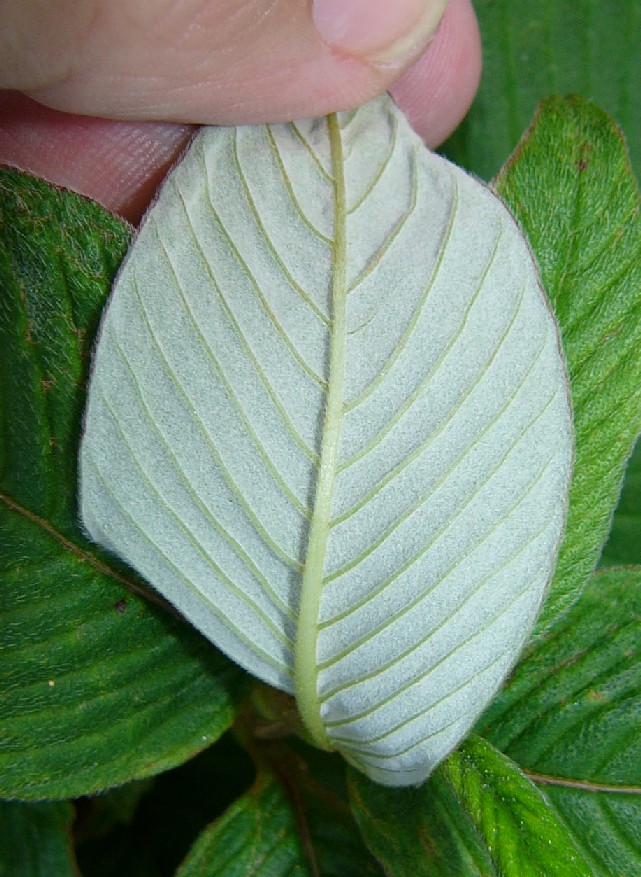 Blätter unterseits dicht behaart, Seitennerven lang, deutlich