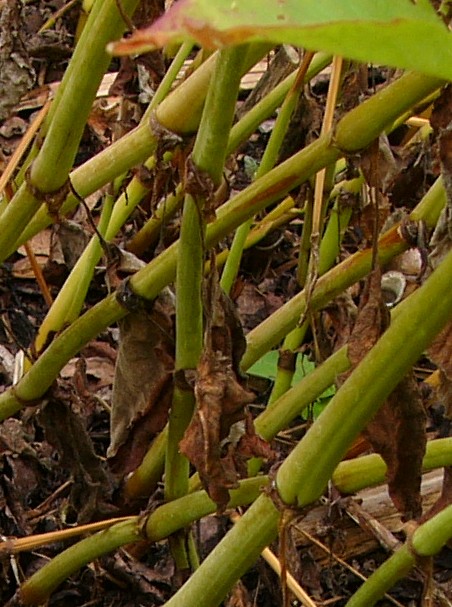 Pflanze ist ein steriler Bastard, d.h. es werden keine oder nur sehr vereinzelt Früchte gebildet, Pollen oft missgebildet Blätter eilanzettlich, obere Blätter am Grund keilförmig,