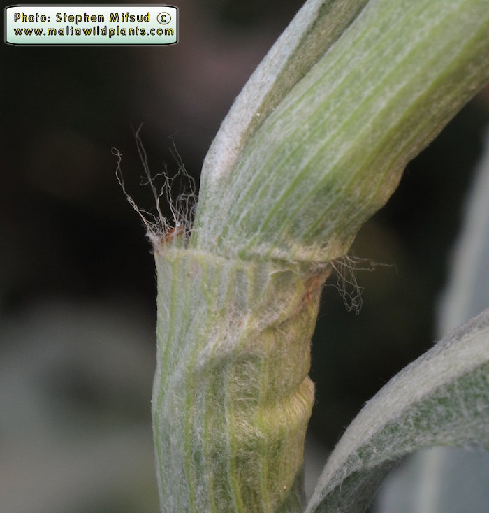 1 Blätter oberseits und Blütenstandsstiel dicht wollig- filzig