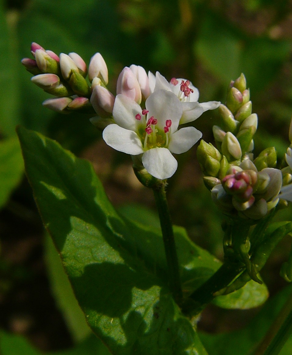 Pflanze 20 - 80 cm groß Teiblütenstände schirmrispig, dicht, +/- unverzweigt Blüten meist mit 5, selten auch 4 Perigonblättern, 8 Staubblätter, 3 Griffel Perigonblätter grün, weiß oder rosa Nüsse 3-kantig,