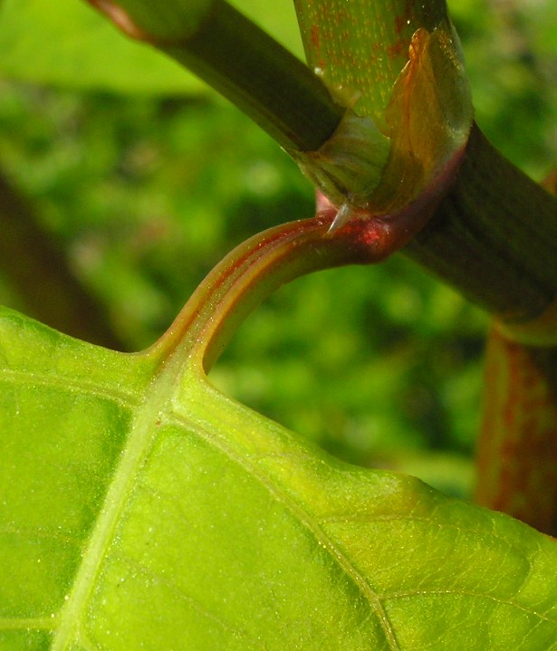 Unterhalb des Blattstielansatzes ohne Grubennektarium