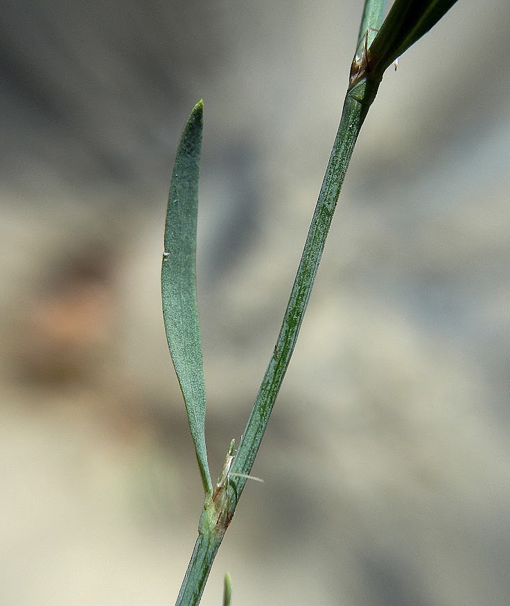 Blätter linealisch, 10 - 30 mm lang, 1 - 3 mm breit, unterseits mit 1 Ader, spitz, hinfällig