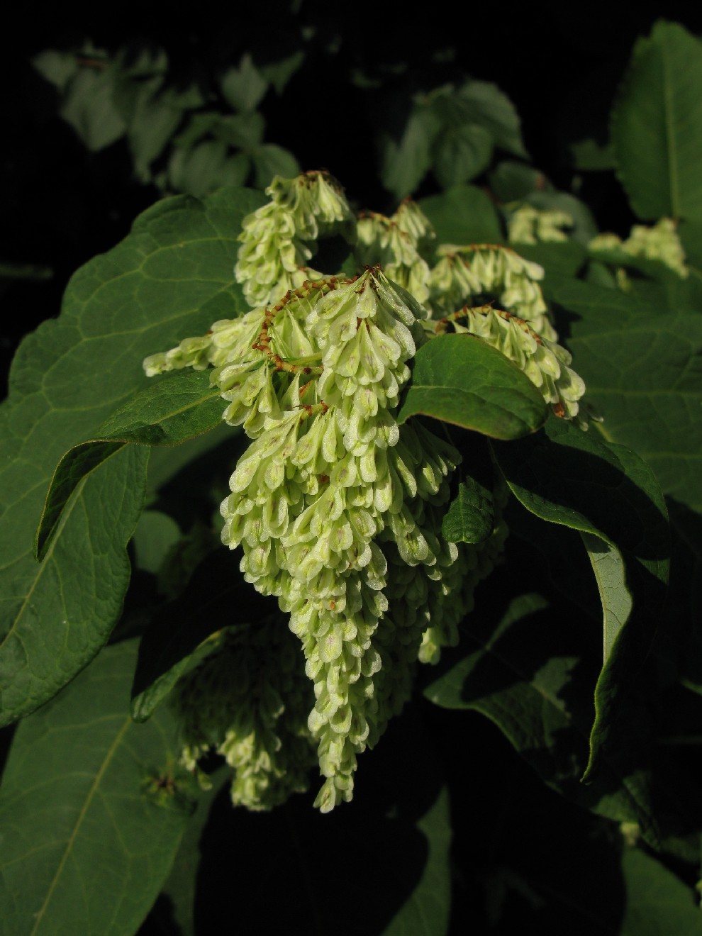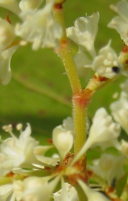 Blüte in vielblütigen Rispen, Pflanze zweihäusig getrenntgeschlechtig: