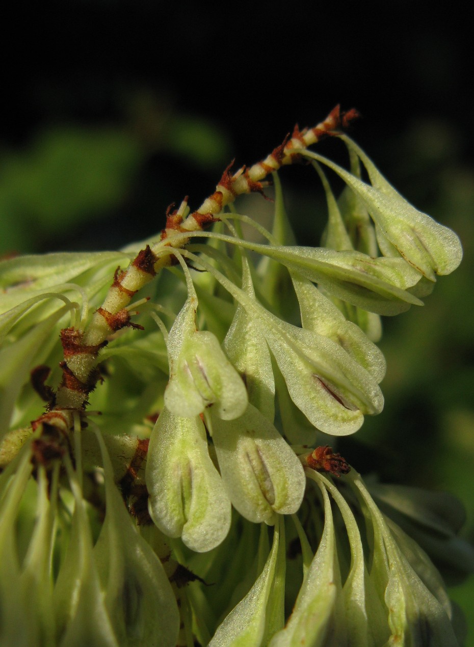 Weibliche Blütenstände grünlich weiß, kurz, rispig, 3 Narben, anfangs aufrecht