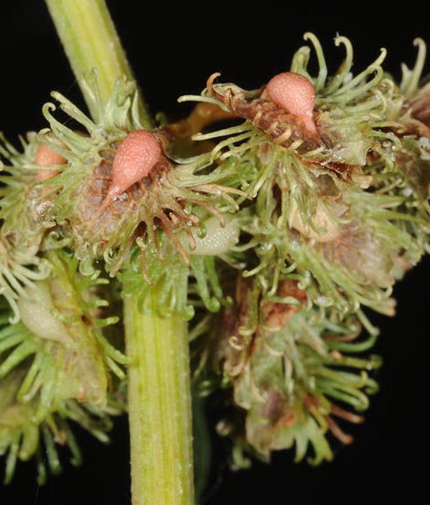 Rumex - Blätter am Grund keil- oder herzförmig, Valven gezähnt, Blütenstiel nicht keulenförmig
