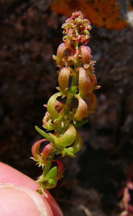 Blütenquirle 2 - 4- blütig Zumindest einige Blütenstiele keulenförmig, breit und flach > Rumex bucephalophorus |