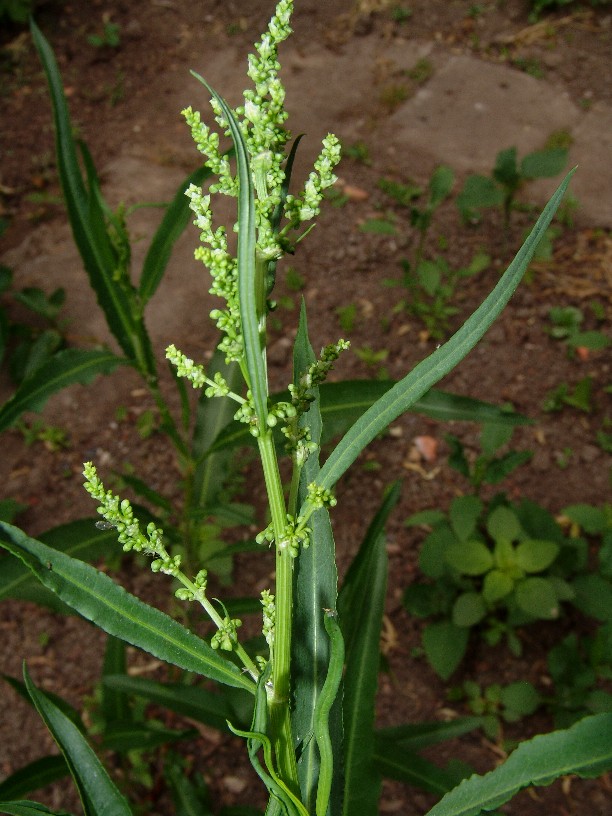 Seltener Neophyt aus Nordamerika Pflanze ohne Grundblätter, Stängelblätter +/- linealisch, mehr als 7 mal so lang wie breit > Rumex triangulivalvis