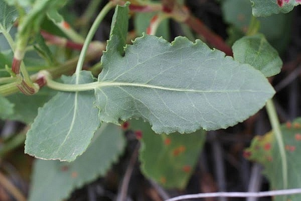 Pflanze 20 - 80 cm hoch, mit mehr als 2 Stängelblättern Blätter blaugrün, kaum länger als breit, zumindest einige mit Einschnürung > 6 |