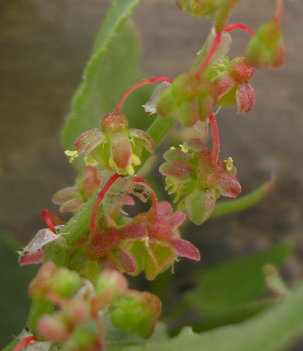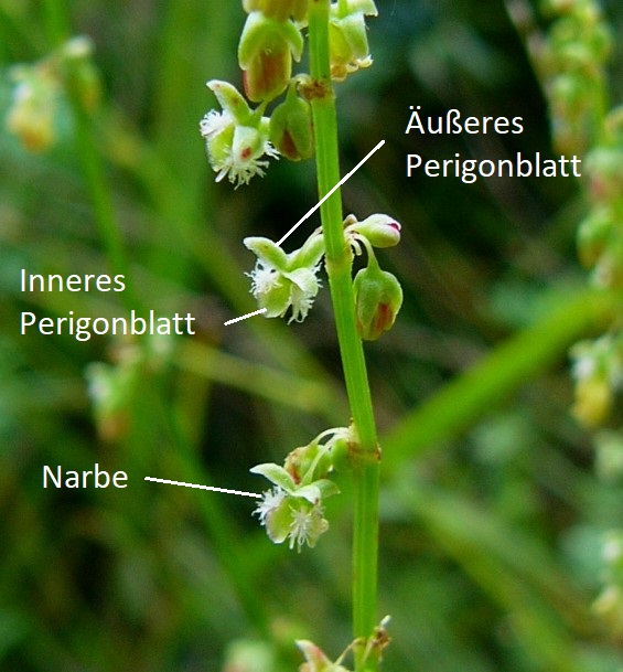 Rumex- Blüten eingeschlechtlich, oft zweihäusig, Blätter elliptisch oder geigenförmig, alle Stängelblätter gestielt