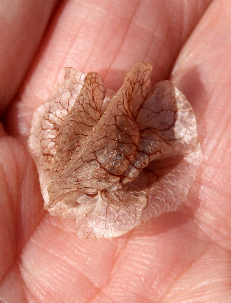 Valven ganzrandig, rundlich, 5 - 6 mm im Durchmesser, etwas länger als breit