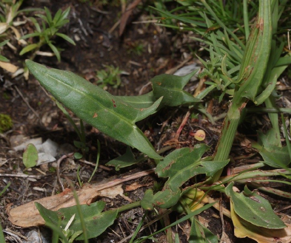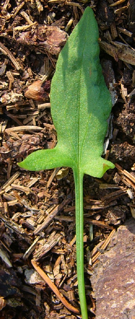 Grundblätter 1,5 - 5 cm lang, 3 - 15 mal so lang wie breit, vielgestaltig: pfeilförmig oder +/- ganzrandig
