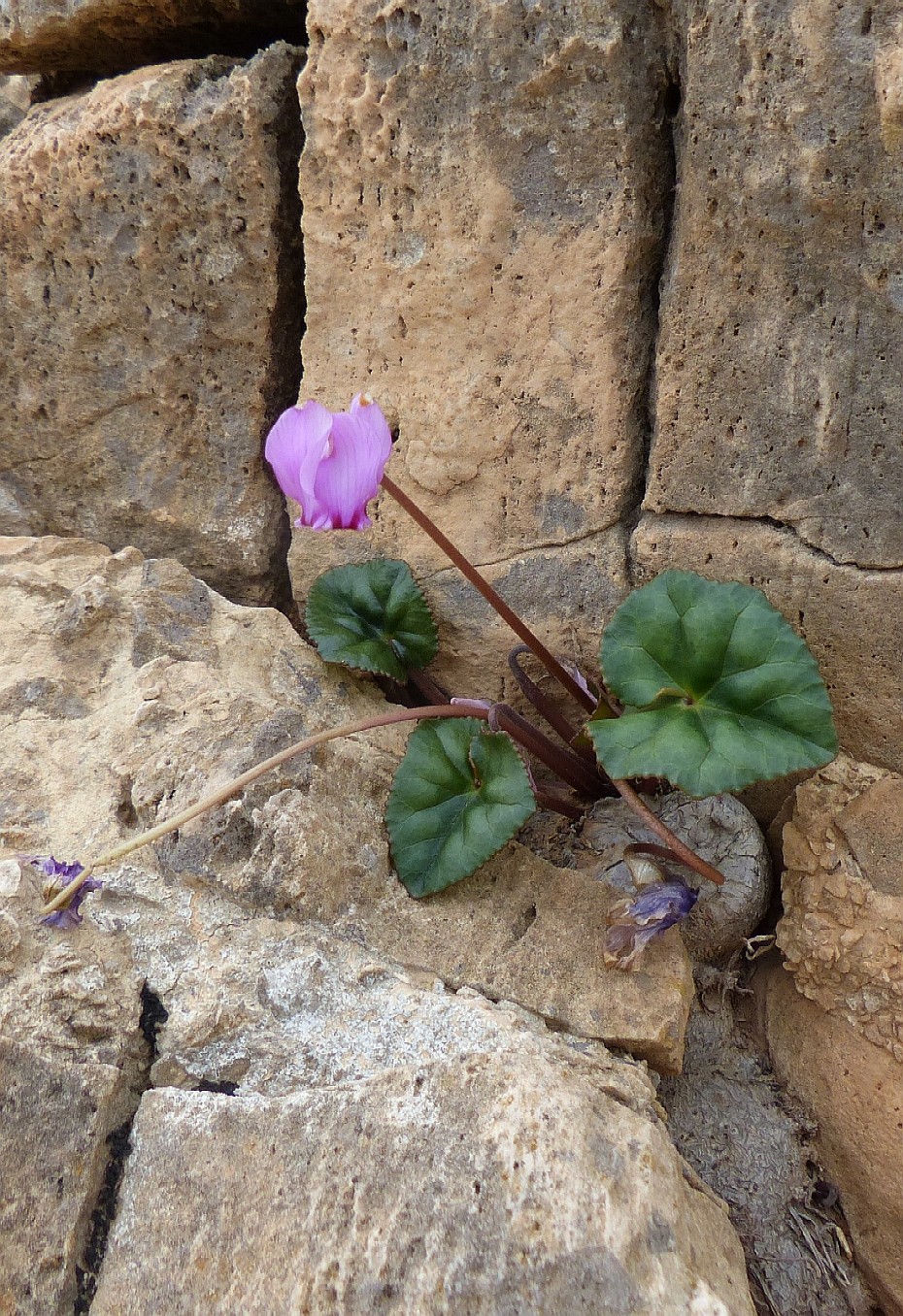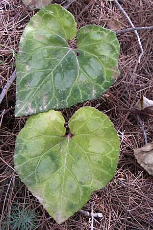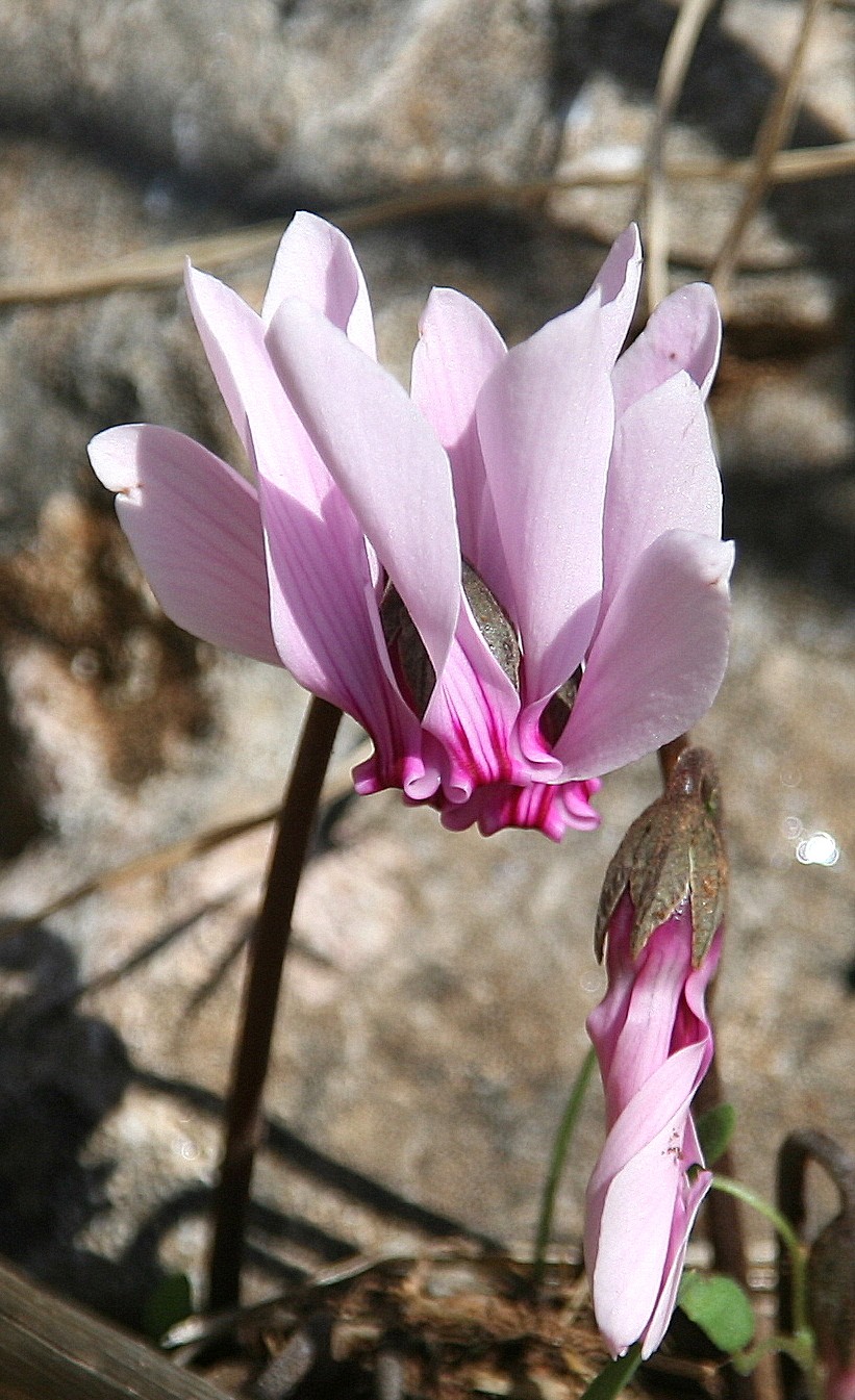 Kreta, Zypern, Türkei Knolle in der unteren Hälfte bewurzelt Blätter herzförmig, ungelappt Krone rosa, am Grund mit 2 - 3 dunklen Streifen > 2