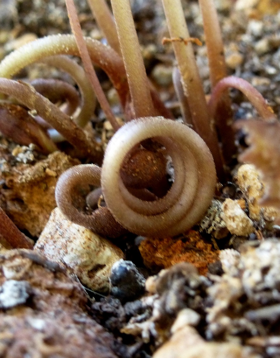 Fruchtstiele von der Spitze gegen den Grund spiralig einrollend