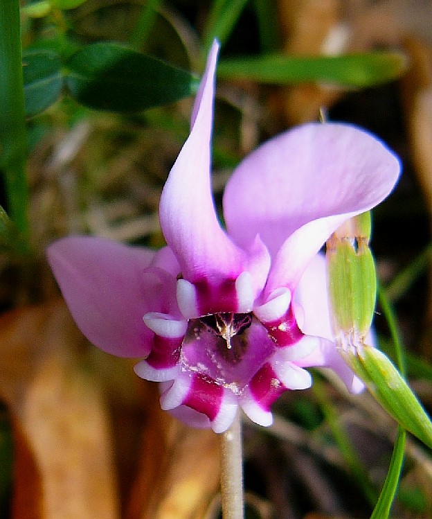 verbreitet Knolle in der oberen Hälfte bewurzelt Blätter rundlich, eckig Krone rosa, Kronzipfel am Grund mit V-förmiger Zeichnung > 1 |