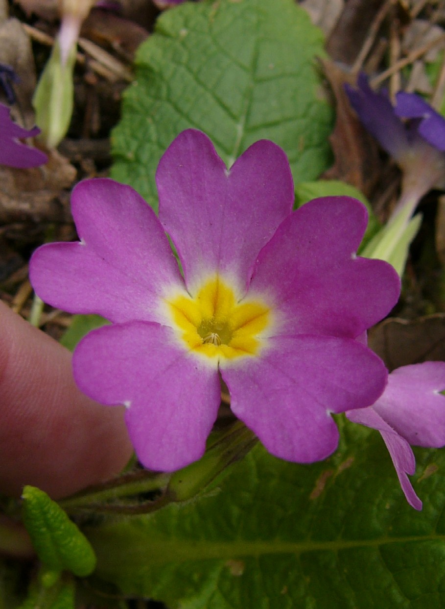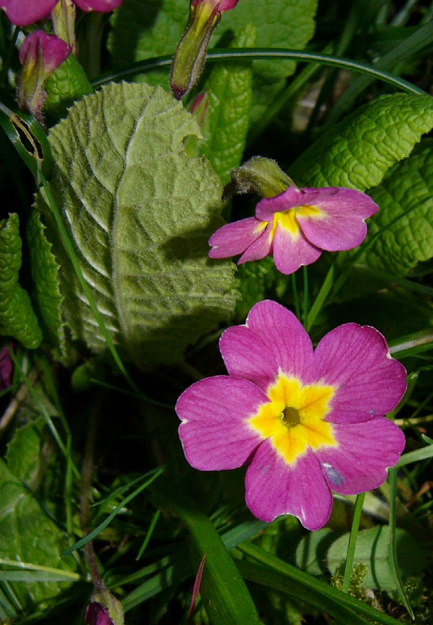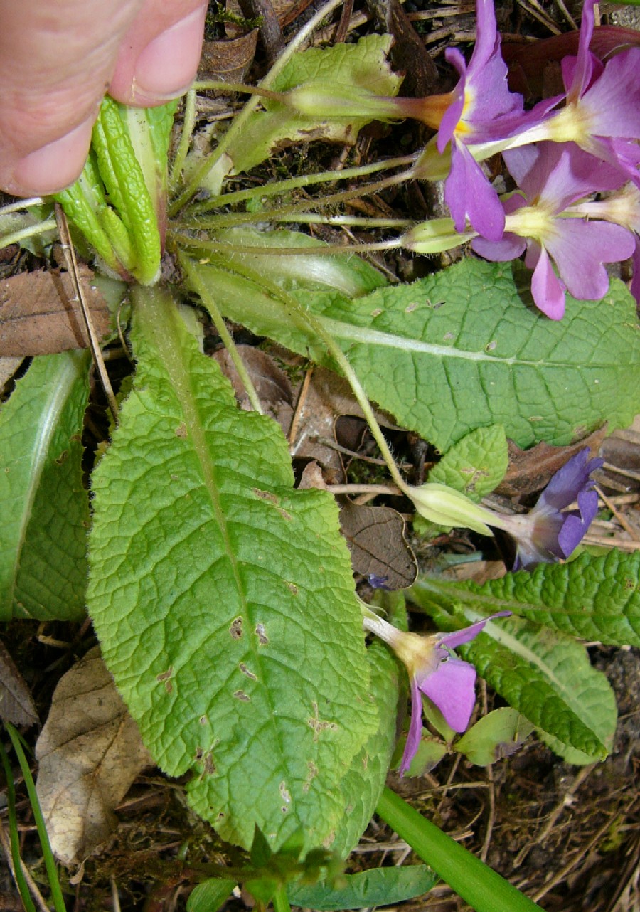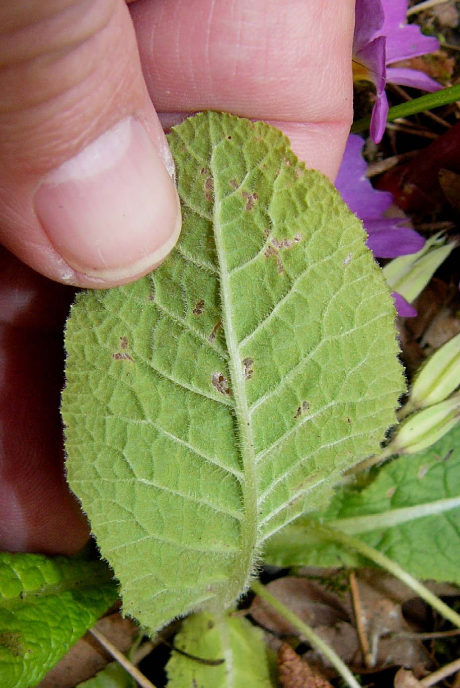 Pflanze 8 - 15 cm groß Blüten rosa, mit gelbem Schlund Blätter keilförmig, +/- abrupt in den Stängel verschmälert Blattspreite unterseits schwach behaart,