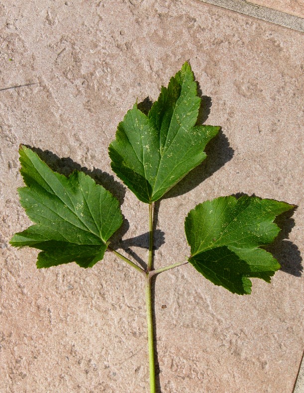 Blätter dreizählig, Blättchen gelappt, grob gezähnt