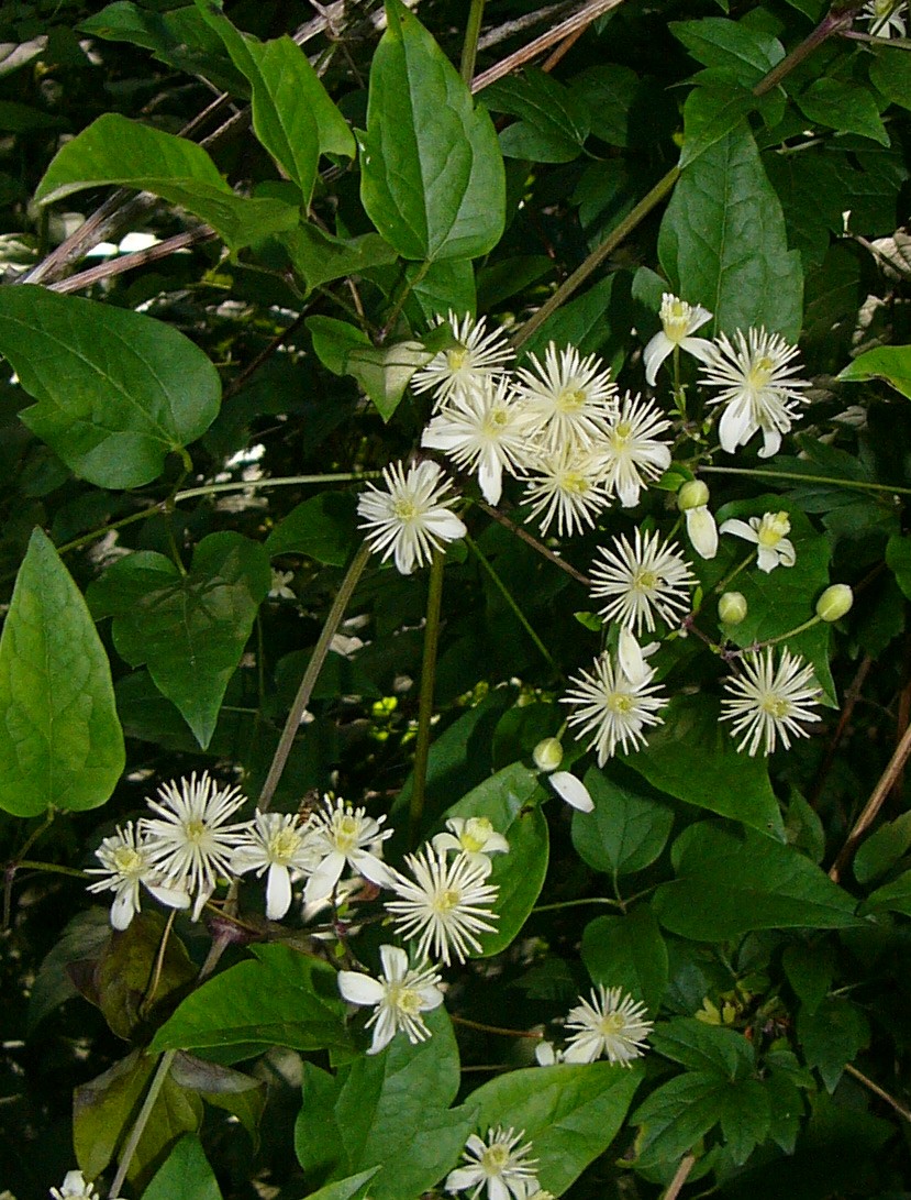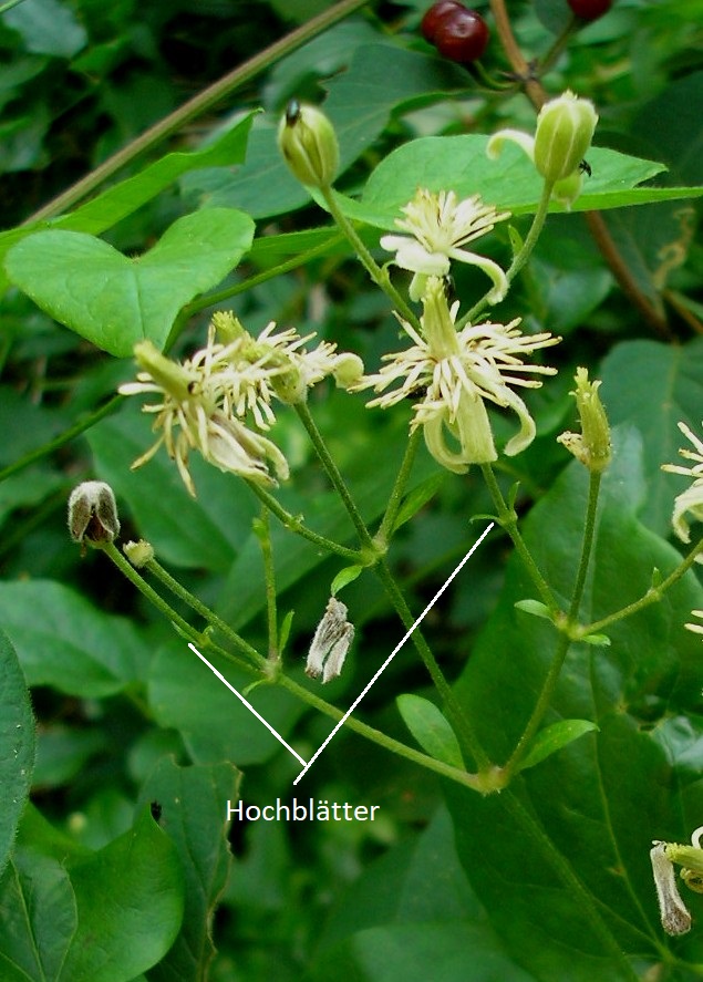 Pflanze kletternd, 3 - 5 m lang Blüten in vielblütigen Rispen Blüten ca. 2 cm im Durchmesser, länger als