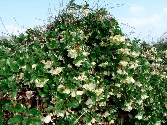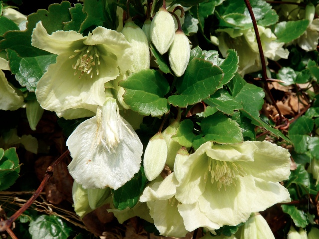 Blüten 4 - 7 cm im Durchmesser, innen kahl, cremefarben