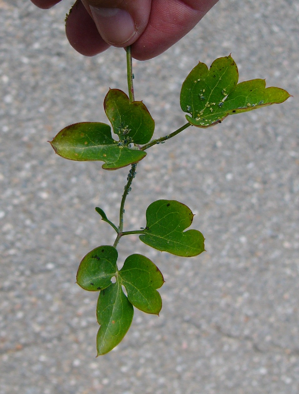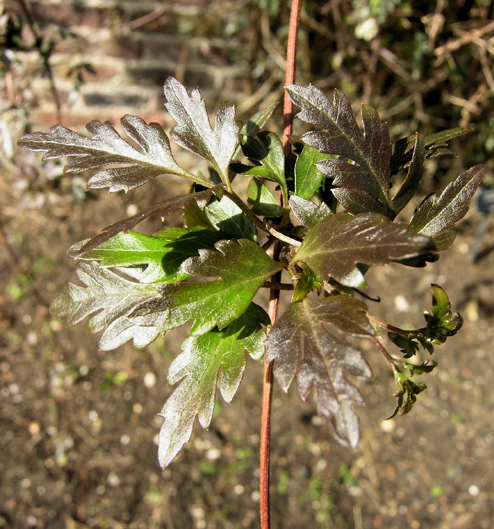 Blätter 2- fach gefiedert, Fiedern meist mit 3 Blättchen Blättchen oft gelappt und mit einem Spitzchen Blättchen beiderseits kahl
