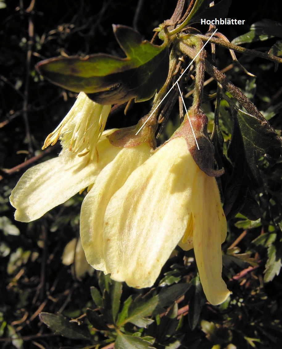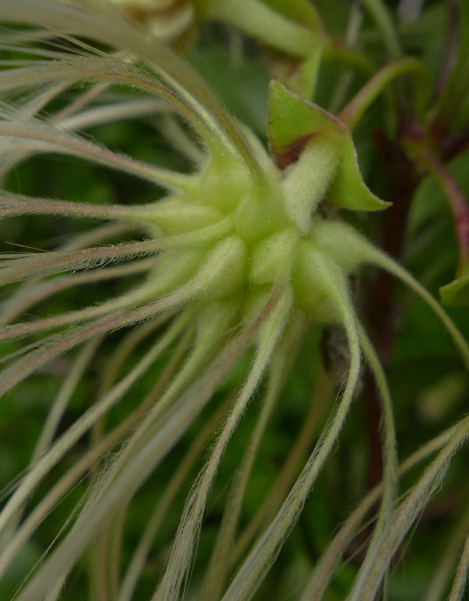 Perigonblätter beiderseits zottig behaart, kaum länger als die Staubblätter Früchte mit federig behaartem Griffel Stängel verholzend, Teilblättchen ganzrandig oder gesägt