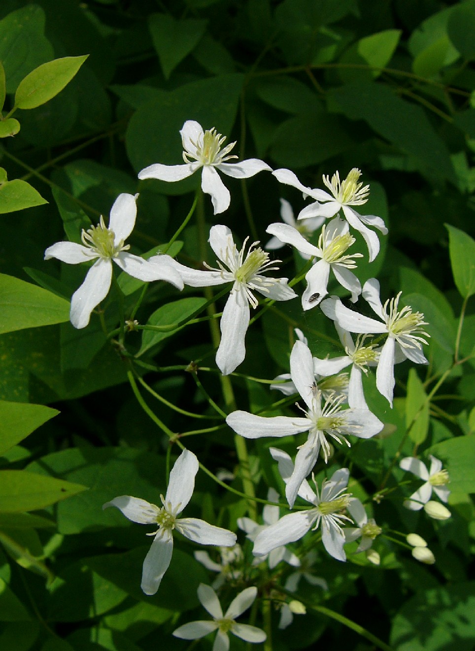 Blüten in reichblütigen, aufrechten Rispen Blüten meist mit mit 4, selten mit 5 Perigonblättern, 8 - 20 mm lang gestielt