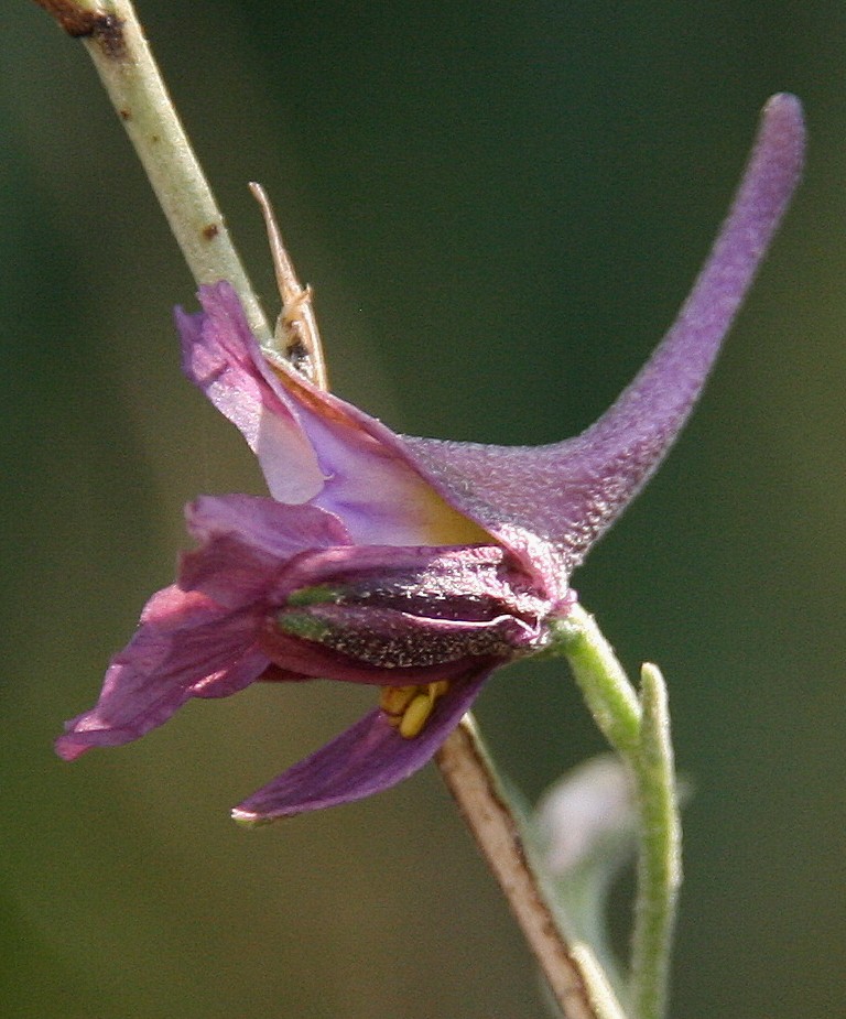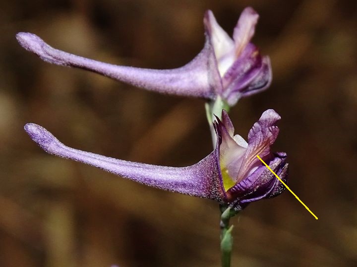 mit ca. 15 mm langem, behaartem Sporn,