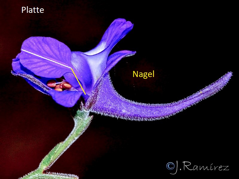 2 Platte der seitlichen Honigblätter abrupt in den Nagel übergehend
