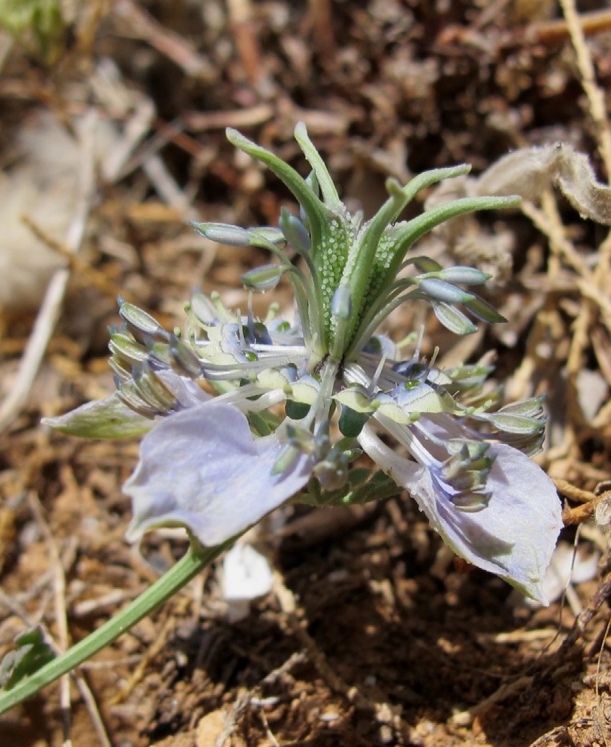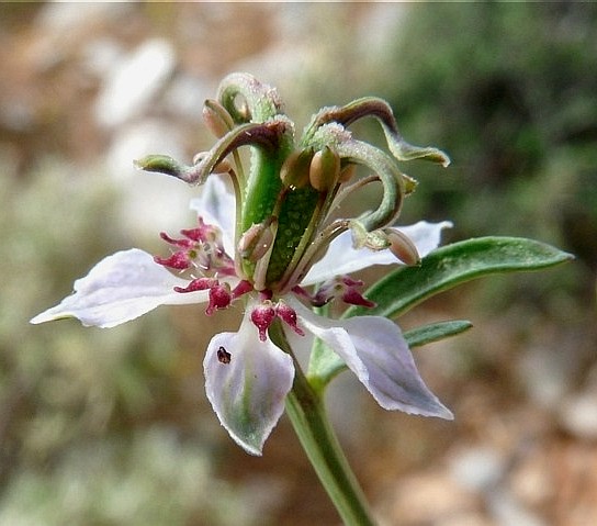 Fruchtblätter der Frucht nur teilweise verwachsen, Staubbeutel blau